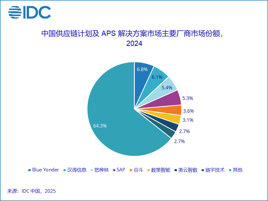 2025年8月29日,北京——全球领先的 IT 市场研究与咨询机构 IDC 最新发布的《中国供应链计划及APS市场份额,2024:工业企业第四件套》报告显示,报告针对2024年中国供应链计划及APS市场的规模、增长速度、主要玩家、市场与技术的发展趋势等内容进行了详细研究。报告数据显示,2024 年中国供应链计划及APS解决方案市场总规模达到22.4亿元人民币,年增长率为27.4%,仍然是核心工业软件中增速最高的市场。在这份权威榜单中,成立仅五年的链宇技术凭借凭全栈服务与创新能力,跻身市场前列,成为最受瞩目的本土新锐厂商之一。